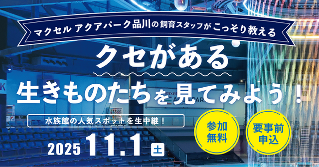 マクセル株式会社(以下、マクセル)は、「マクセル アクアパーク品川の飼育スタッフがこっそり教える クセがある生きものたちを見てみよう!」を2025年11月1日(土)にアート&テクノロジー・ヴィレッジ京都のマクセル「クセがあるスタジオ」で開催します。