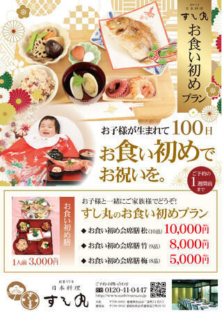 愛媛県松山市で創業77年を迎える老舗寿司店「すし丸」はこの度、赤ちゃんの健やかな成長を願う伝統行事「お食い初め(百日祝い)」を祝うための特別プランの提供を開始いたしました。