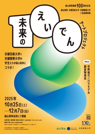 京都芸術大学(京都市左京区、学長:佐藤卓)は、叡山電鉄株式会社(本社:京都市左京区、社長:豊田秀明)、京都精華大学(京都市左京区、学長:澤田昌人)と連携し、両大学の特色を活かしつつ、芸術を通じての地域活性化や、人材育成、文化振興を推進し、沿線の魅力向上に貢献する取り組みを進めています。その取り組みの一つとして、学生が叡山電車のホームや待合室、看板枠などに作品を展示する「未来のえいでん」アートプロジェクトを実施。