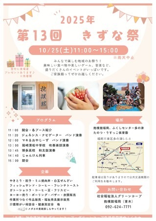 西日本を中心に16の生協で構成されている一般社団法人グリーンコープ共同体(本部:福岡市博多区、代表理事:日高 容子、以下「グリーンコープ」)に所属する社会福祉法人グリーンコープは、「第13回 きずな祭」を10月25日(土)に開催します。