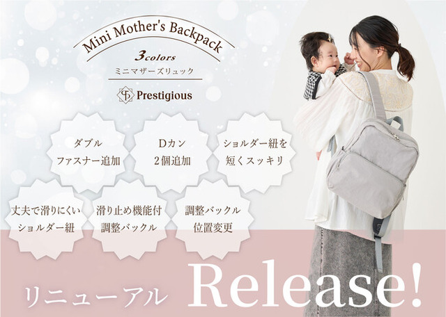 アンバサダーメンバーに当社のマザーズバッグ各種をご使用いただき、商品に対する率直なご意見や使用感、改善提案などを伺いました。当社従業員の改善案と合わせ、今回は「ミニマザーズリュック」の商品の改良が実施され、2025年10月24日(金)20:00にリニューアル発売されることが決定しております。以下のように具体的な改善がおこなわれました。