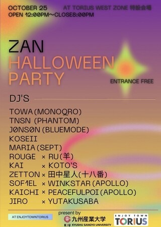 福岡県糟屋郡久山町のショッピングセンター「トリアス」で、2025年10月25日(土)に「ZAN ハロウィンパーティー」を開催いたします。