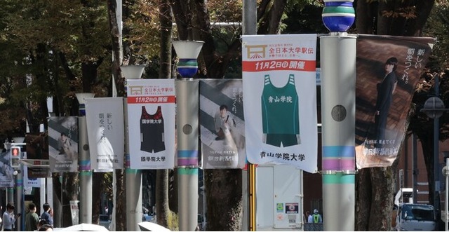 株式会社朝日新聞社(代表取締役社長CEO:角田克)は、11月2日の秩父宮賜杯第57回全日本大学駅伝対校選手権大会(朝日新聞社など主催、長谷工グループ特別協賛)開催に先立ち、出場する全27チームのユニホームを描いたフラッグ広告を名古屋・広小路通で掲出しています。フラッグ広告の掲出は今回が初めての試みとなります。