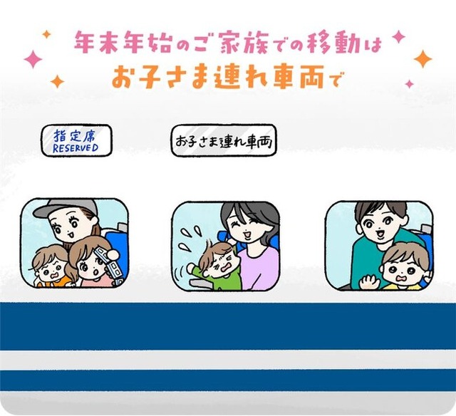 「お子さま連れ車両」は、お子さま連れのお客様にご家族で周囲に気兼ねなくご乗車いただくことを目的としたサービスです。家族旅行や帰省にぜひご利用ください。
