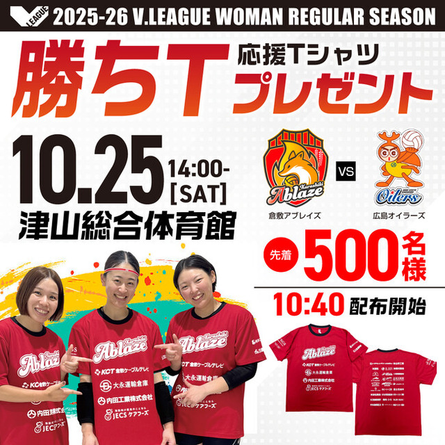 10月25日(土)は、入場時に先着500名様へ応援Tシャツ「勝ちT」を配布。