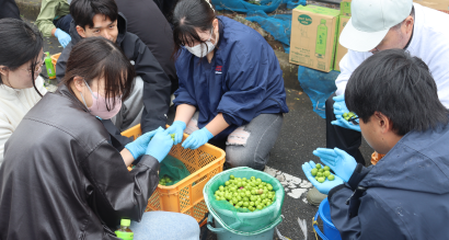 選別をする学生たち