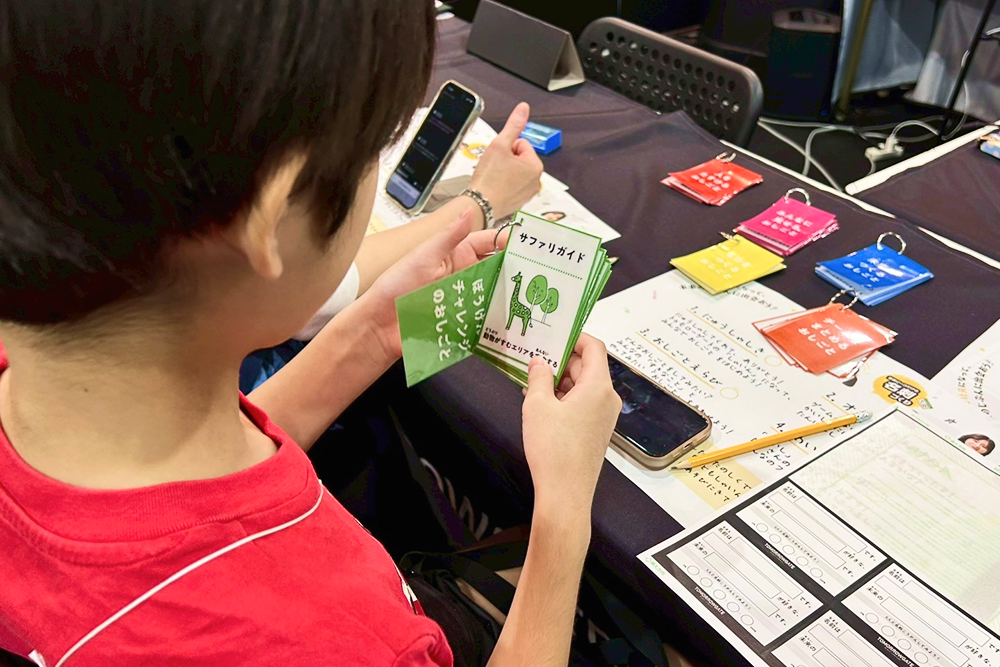 当社ブースでは、子どもたちが仮想空間のオフィスを探検し、自分の“なりたい姿”を名刺にデザインする30分間の没入型ワークショップを開催。さらに、トゥモローゲートの「キッズビジネススクール」受講生が“先生役”として運営をサポートし、自ら学んだ「仕事の楽しさ」を小さな子どもたちへ伝えました。■お仕事の体験内容