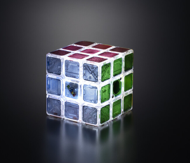 本商品は、マジックミラーのような構造により普段は鏡面のように見えるキューブが、光ることで色が出現する、これまでにないギミックを搭載した革新的なルービックキューブです。