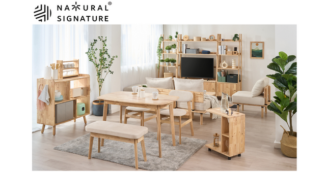 『NATURAL SIGNATURE(R)』は、空間に溶け込むシンプルなデザイン、環境への影響が少ないサステナブル素材ラバーウッド、ひとつひとつ異なる節や木目、時間とともに変化する天然木の美しい色合いなど、長く使うほどに愛着が増していくそんな家具に囲まれる心地良い暮らしを提案します。