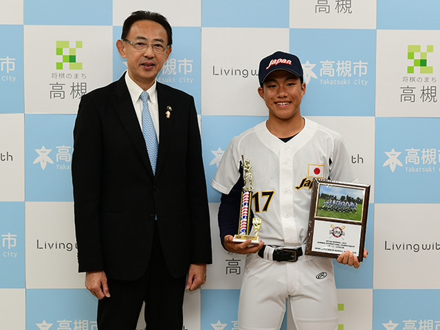 令和7年10月29日(水曜日)、高槻市立第一中学校3年生の水越統也さんが高槻市役所を訪問し、今年7月17日から7月20日まで米国で開催された「MCYSA全米選手権」に日本代表チームのメンバーとして出場し、チームが見事優勝したことを濱田剛史市長に報告しました。