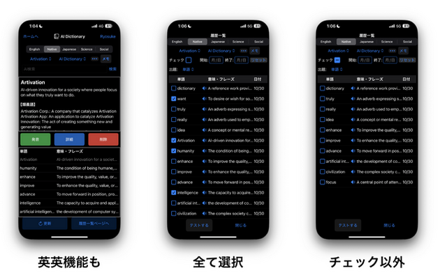 Artivation株式会社(本社:東京都大田区、代表取締役社長 兼 CEO:中田 涼介)は、英語学習アプリ『AI Dictionary』において、以下の機能アップデートを実施しました。