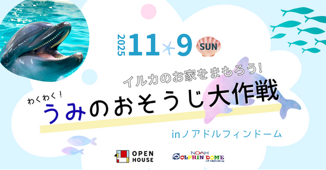 株式会社オープンハウスグループ(本社 東京都千代田区、代表取締役社長 福岡良介、以下「当社」)のグループ会社である株式会社オープンハウス 関西支社は、2025年11月9日(日)にノアドルフィンドームとともに「イルカのお家をまもろう!わくわくうみのおそうじ大作戦」イベントを開催いたします。