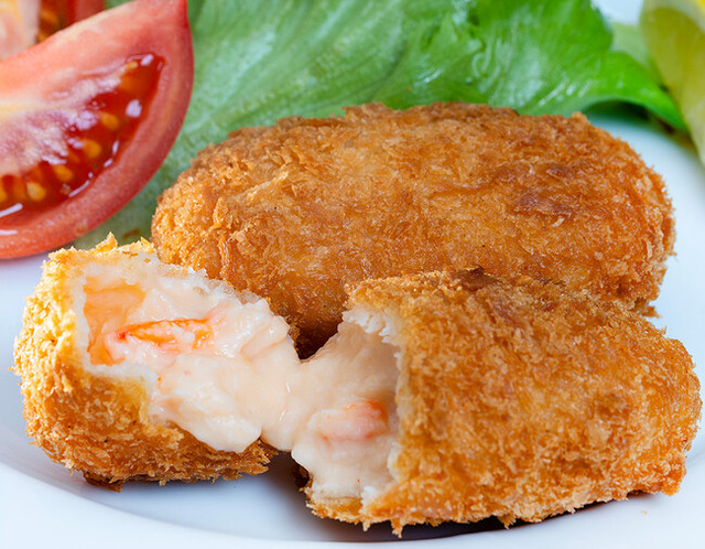 カニクリームコロッケは農林水産省の規定で、原材料中に8%以上のカニが含まれるものと定められていますが、多くの市販品ではコストの問題から基準未満の配合にとどまっています。当社では「本物のカニクリームコロッケを届けたい」という思いから、カニメーカーと共同開発を実施。
