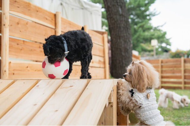 ドッグランエリアにはわんちゃん用のオモチャ箱とアスレチック付きなので、荷物も身軽に済みます。