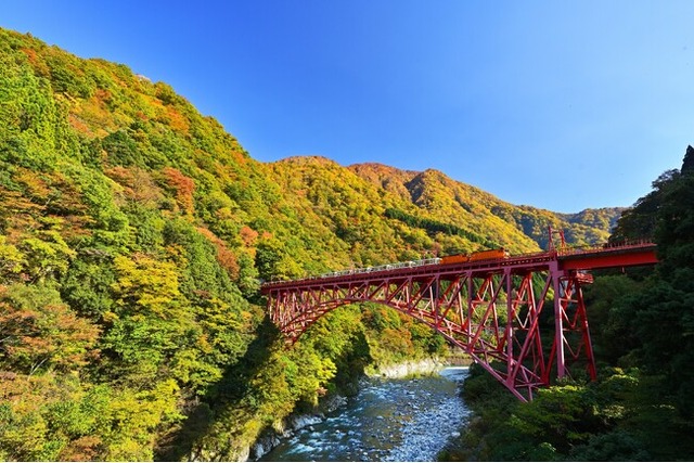 トロッコ電車に乗って黒部峡谷の紅葉をぜひお楽しみください。