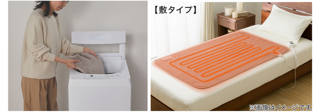 敷きタイプと掛け敷きタイプの2種類を展開しています。敷きタイプは、ベッドや布団の上に敷いて使うため体の下からじんわりと温めてくれます。