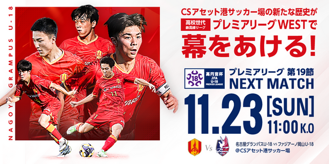 愛知・名古屋で開催されるアジア・アジアパラ競技大会の開催に向けて、改修工事を行っておりました「CSアセット港サッカー場」がリニューアルされます。この新しくなった施設を一足先に体験できるイベントとして、11月23日(日・祝)に「高円宮杯 JFA U-18 サッカープレミアリーグ 2025 WEST」 第19節 名古屋グランパスU-18 vs ファジアーノ岡山U-18の試合と、名古屋グランパススクールコーチによるサッカー教室を開催することとなりましたのでお知らせいたします。