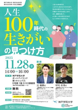 神戸学院大学 現代社会学部 現代社会学科では、市民の皆さまを対象とした公開講座「人生100年時代の生きがいの見つけ方」を開催します。