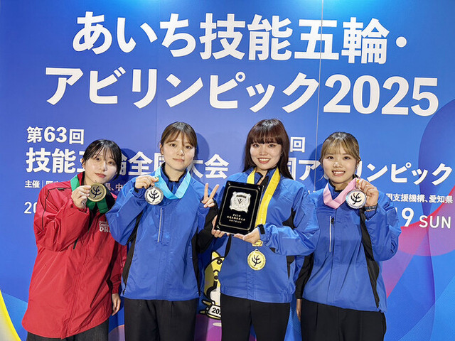 学校法人貝畑学園が運営する「専門学校岡山ビジネスカレッジ」(本部所在地:岡山県岡山市、理事長:貝畑拓哉 以下、岡山ビジネスカレッジ)は、2025年10月17日(金)~20日(月)に愛知県国際展示場で開催された第63回技能五輪全国大会〈洋裁職種〉において、岡山県代表選手として出場したファッションクリエイター学科の学生3名が、金賞・銀賞・銅賞を受賞しました。