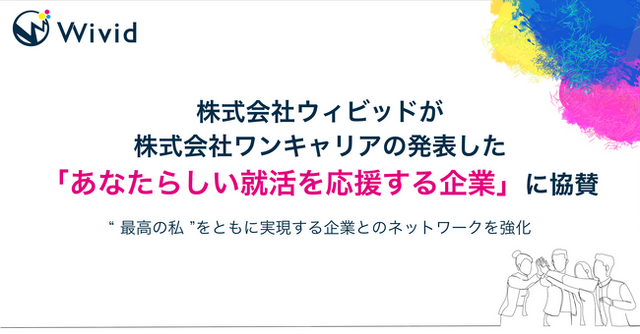 ハイクラス学生をメインターゲットとして就活支援を行う株式会社ウィビッド(本社:東京都渋谷区 代表取締役:大槻修也、以下ウィビッド)は、株式会社ワンキャリア(本社:東京都渋谷区 代表取締役社長 執行役員CEO:宮下 尚之、以下ワンキャリア)が発表した「あなたらしい就活を応援する企業」に協賛いたしました。