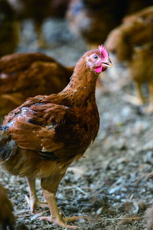 メインのレモンガーリックチキンに使用する赤鶏は、生産効率を重視して改良された白い羽のブロイラーよりもゆっくりと育ち、赤い羽根が特徴的で、肉質の良さが世界的にも評価の高い系統です。米や大豆、とうもろこしをメインに、肉骨粉や動物性油脂などの動物性原料を配合しない「植物性」にこだわることで、雑味のない、お肉本来のうまみをしっかり味うことができます。植物性原料についても、遺伝子組み換え作物やポストハーベスト(収穫後に散布する農薬)コーンの混入を防ぐ管理体制を確立し、秋川牧園ならではの安全性を築いています。