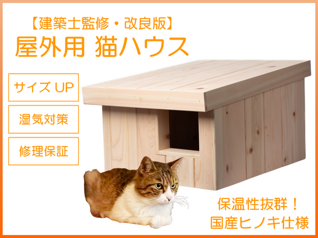 外で暮らす猫たちが冬の寒さをしのげる「改良版・屋外用 猫ハウス」を、