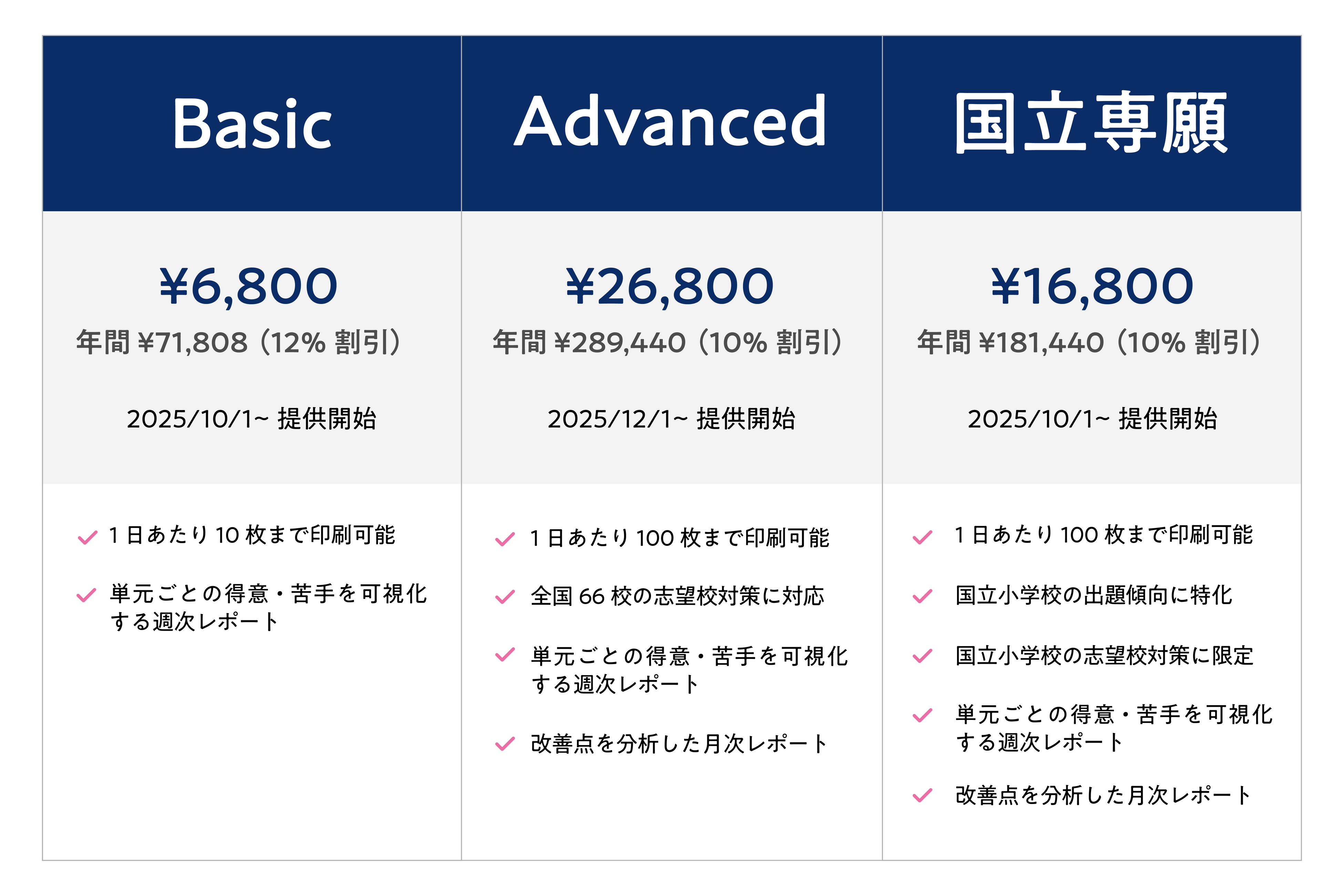 マジタクでは、家庭の学習スタイルに合わせて選べる3つのプランをご用意しています。