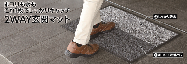 ・手前のマットでホコリや泥を落とし、奥のマットでしっかり吸水できる2Way仕様。
