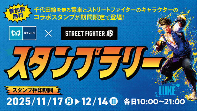 三井ショッピングパーク ららテラス北綾瀬(運営:三井不動産商業マネジメント株式会社)は、2025年11月17日(月)~12月14日(日)まで、「東京メトロ×STREET FIGHTER 6スタンプラリー」と題し、千代田線車両とSTREET FIGHTER 6のキャラクターのコラボスタンプラリーを実施いたします。