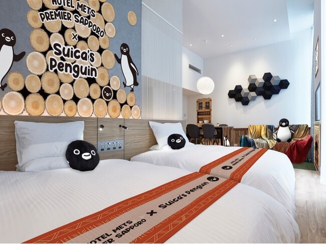 JR札幌駅より徒歩2分の「JR東日本ホテルメッツ プレミア 札幌」(運営:日本ホテル株式会社 JR東日本ホテルメッツ本部)では、Suicaのペンギンと過ごす特別なコンセプトルーム「Suicaのペンギン プライベートリビングルーム」を2025年12月13日(土)より期間限定で販売いたします。