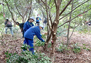 2024年、「綾町イオンの森」と「割付地区の日向夏畑」が環境省の自然共生サイトに認定され、OECMとして国際データーベスに登録されました。本認定を受け、里山の新たな価値創出を目指して、綾町と当財団は連携協定を締結し、さまざまな活動を推進しています。 本年は、300名のボランティアの皆さまとともに、生物多様性保全への取り組みとして、育樹のほか、ビオトープ観察会、昆虫の住処となるバグズハウスづくりも実施します。