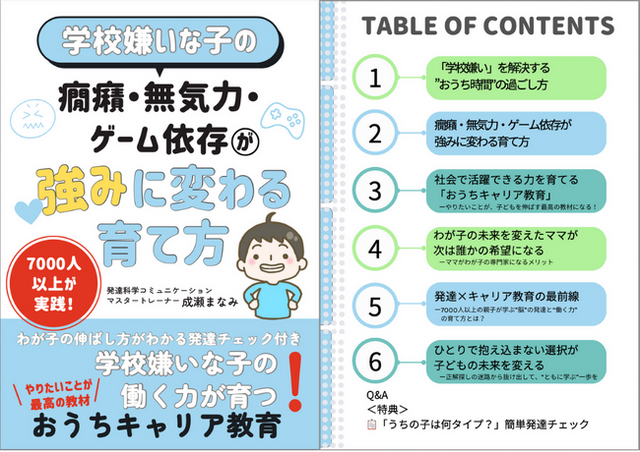 はじめまして。発達科学コミュニケーション講師の成瀬まなみです。このたび、多くの親御さんに希望を届けたいという想いで、『学校嫌いな子の癇癪・無気力・ゲーム依存が強みに変わる育て方』電子書籍を完成させました。