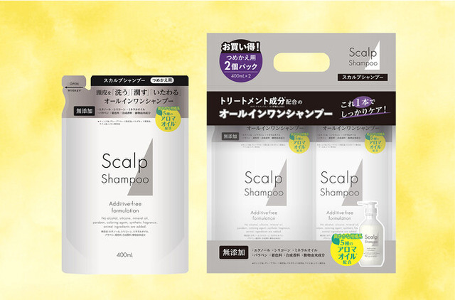 NCスカルプシャンプーは、アミノ酸系※1シャンプーにダブルのスカルプケア成分※2とトリートメント成分※3を配合したオールインワンシャンプーです。頭皮と毛髪に優しい洗浄成分で洗い上げながら、スーッとした清涼感と植物由来の保湿成分で、頭皮環境を整えます。さらに、7つの無添加※4処方を実現。5種の柑橘系アロマ※5が、お風呂タイムをさわやかに彩ります。累計販売数35,000個以上※6と好評を博している本製品は、オンラインストア「Amazon」でも販売しております。