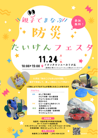 いつ襲ってくるかわからない災害のために、親子で体験し、話し合いながら、楽しく防災について学べるイベントをイオンタウンユーカリが丘で開催します。