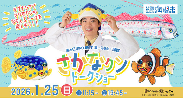 株式会社ラグーナテンボス(所在地:愛知県蒲郡市、代表取締役社長:小寺 康弘、以下「ラグーナテンボス」)は、2026年1月25日(日)に「海と日本 PROJECT 海・みなと・蒲郡 さかなクントークショー」(主催:一般社団法人海みなと蒲郡)を開催します。