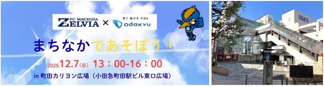 FC町田ゼルビア(株式会社ゼルビア、本社:東京都町田市、代表取締役社長兼CEO:藤田 晋)と株式会社小田急SCディベロップメント(本社:東京都新宿区、取締役社長:細谷 和一郎)は、2025年12月7日(日)、イベント「まちなかであそぼう! in町田カリヨン広場(小田急町田駅ビル東口広場)」を初開催します。