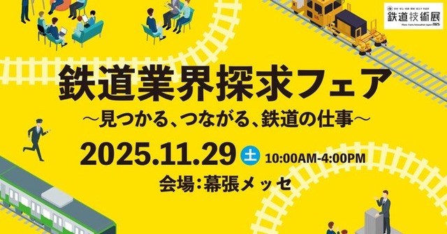 産経新聞社は、11月26日(水)に千葉市美浜区の幕張メッセで開幕する「第9回 鉄道技術展 2025」の最終日、29日(土)に「鉄道業界探求フェア ~見つかる、つながる、鉄道の仕事~」を開催します。入場無料(※要事前登録)。【公式サイト】 https://mtij.jp/recruit-visitor/