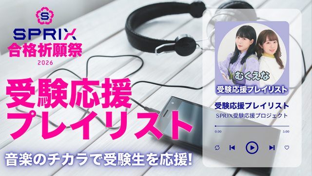 SPRIX受験応援アンバサダーを務める二人組YouTuber「むくえな」が選んだ特別なプレイリストも公開します。