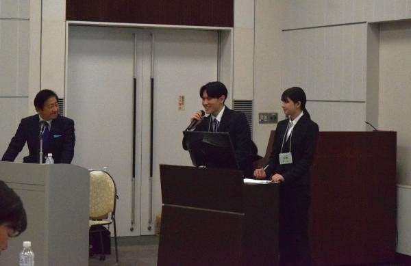 部門Aで審査員特別賞を受賞した中山ゼミ・越後ボーイズ【食料産業学科3年:近藤さん/小嶋さん/笠原さん】は、「エソを使用した『新潟バーク』の開発」をテーマに発表に臨みました。