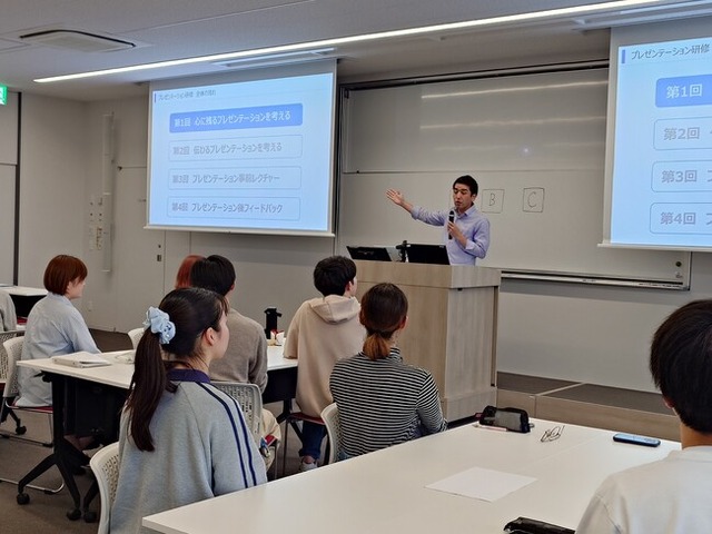 話の構成によって印象がどのように変わるのかをワークショップ形式で体感していただき、自身の発表内容に適した構成を検討していただきました。また、話し方や資料の見せ方など、伝わりやすいプレゼンテーションに必要な具体的ポイントについても学んでいただきました。