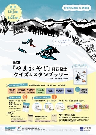 (3)各スタンプスポットで出題される絵本『やまおやじ』や、市交通局、札幌千秋庵にまつわるクイズもスタンプラリーと合わせてお楽しみいただけます。クイズの答えは、最終スタンプスポット(札幌千秋庵本店)に掲出します。