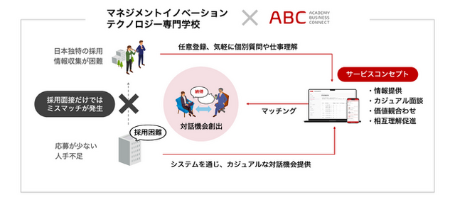 マネジメントイノベーションテクノロジー専門学校と「ABC」の連携図