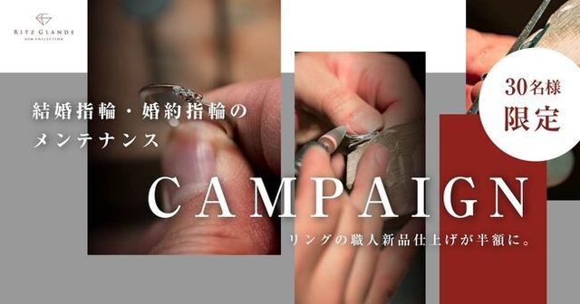 株式会社一宝(所在地:北海道札幌市)が運営する、ジュエリー修理・リフォーム・リペア専門店「RITZ GLANDE(リッツグランデ)」は、結婚指輪・婚約指輪に特化した「職人新品仕上げ半額キャンペーン」を2025年12月~2026年1月の2か月間、先着30名様限定で実施いたします。