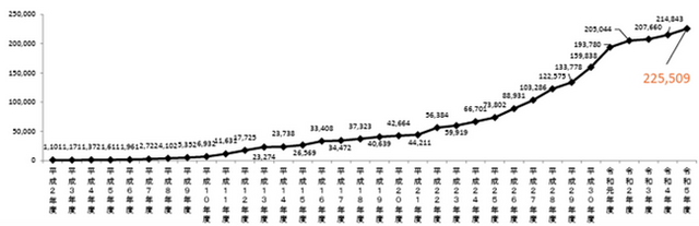 児童相談所における虐待相談対応件数(こども家庭庁より)