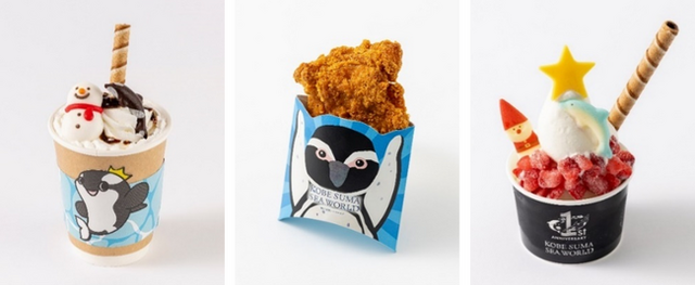 オルカパフォーマンスを観覧しながら楽しめる軽食やドリンクを販売する「ポートダイナー オルカスタディアム」では、シャチのチョコと雪だるまのマシュマロが乗った“シャチと雪だるまのウインナーコーヒー”や、マゼランペンギンがチキンを掲げているようなパッケージが愛らしい“すまチキ”が新登場。ホットメニューで温まりながらオルカパフォーマンスをお楽しみください。