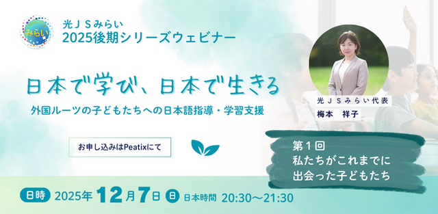 外国ルーツの子どもたちへの日本語指導・学習支援について考える光JSみらいのウェビナー新シリーズが始まります!