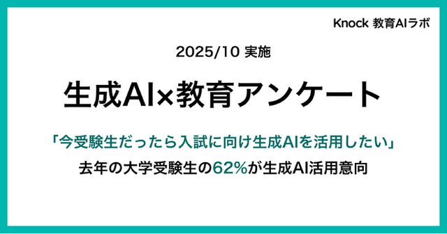 AIチューター「Knock」を運営するHanji株式会社(本社:東京都品川区、代表取締役CEO:村田洋佑)が運営する「Knock 教育AIラボ(https://note.com/knock_lab )」では、2025年に大学に入学した大学1年生に対し、受験での生成AIの活用についてアンケート調査を2025年10月に行ないました。以下、概要をご報告します。
