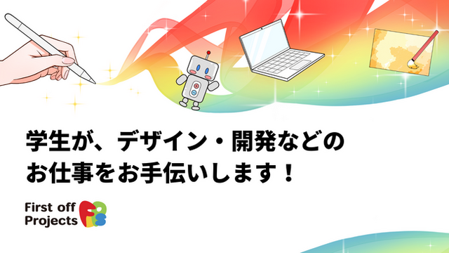 高校生と大学生によるビジネスコミュニティ「First off Projects」は、所属する学生クリエイターが企業や個人からの仕事を受託するサービスを開始しました。提供する領域はデザイン・開発・企画・フリートークの4カテゴリーで、依頼内容に応じて都度見積りにて対応します。