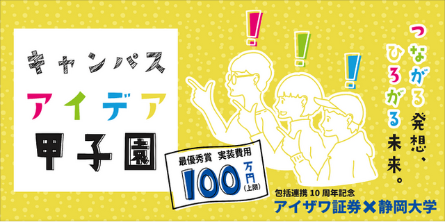 こうした歩みを踏まえ、10周年の節目として新たな一歩を記念する企画として、「キャンパスアイデア甲子園」を開催いたします。本イベントでは、学生自身がキャンパス生活の中で感じる課題に対して具体的な解決策や改善策を考え、提案することを通じて、より良い学校生活の実現につながる実践的な学びの機会を提供します。応募作品は単なるアイデアにとどまらず、最優秀賞に選ばれた提案については、静岡大学イノベーション社会連携推進機構および当社の伴走支援のもと、学生の手で学内での実装を目指します。本イベントでの課題発見・解決・実装の一連の経験は、アイザワゼミが掲げる「次世代アントレプレナーシップ育成」の理念にも直結しており、学生が将来の起業や事業創造に必要な基礎力を身につける機会にもなります。本イベントの最大の特徴は、「学生のアイデアを本当に形にする」ことです。学生生活の中で感じる不便や「こうだったらいいのに」という率直な想いを、現実的な仕組みへと昇華させる機会を提供し、学生の主体性や実行力を育むことを目指しています。また、本取り組みは直接的には「キャンパス課題の解決」を目的としていますが、学生が自ら課題を発見し、解決策を提案し、実行へ向けて関係者と対話するという一連のプロセスは、将来の社会で求められる実践的な力にもつながります。結果として、こうした取り組みが地域や社会の課題解決へと自然に波及していくことも期待しています。将来的には地域や社会の課題解決にもつながる可能性を秘めていますが、まずは学生が主体的に考え、学校生活をより良くすることを第一の目的としています。