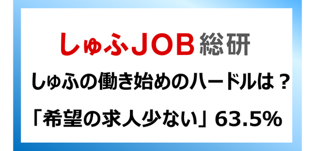 仕事と家庭の両立を希望する主婦・主夫層の実情や本音を探る調査機関『しゅふJOB総研』(運営会社:株式会社ビースタイル ホールディングス 本社:東京都新宿区、代表取締役:三原邦彦)は『働き始めのハードル』をテーマに仕事と家庭の両立を希望する主婦・主夫層にアンケート調査を行いましたので以下にご報告します。(有効回答数:713件)